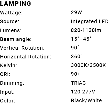 Focus stays true to the conventional style of track lighting systems but incorporates simplistic, modern style. Its cylindrical head removes unnecessary frills leaving room for only the essentials. Made out of 1070 pure aluminum, it is built to last with durable strength like no other. A special twist feature designed within the front of the track head allows for field adaptation that controls the double bifocal lenses within. This allows the beam to change from 15° to 55° with maximum uniformity while reducing light spill.