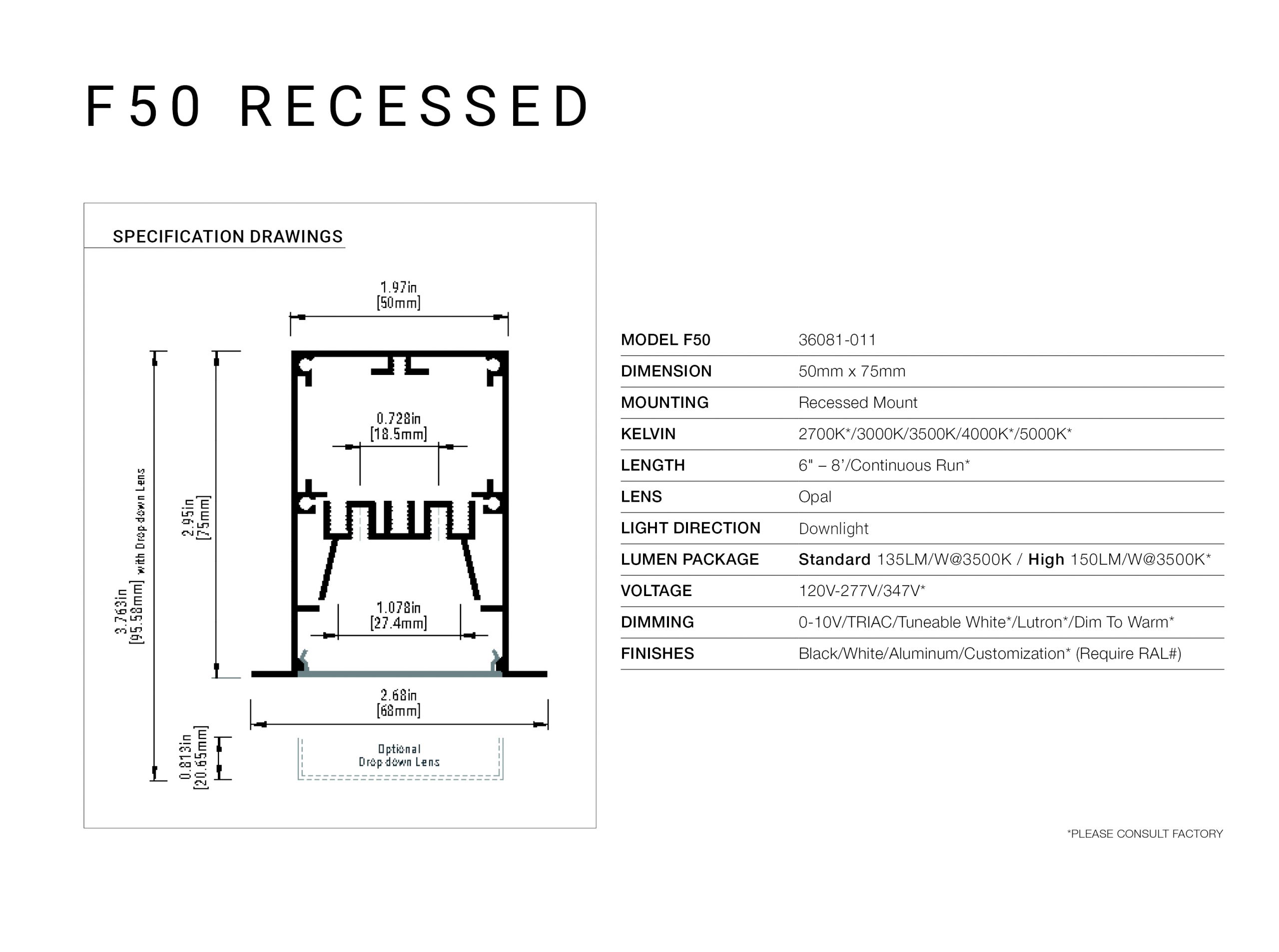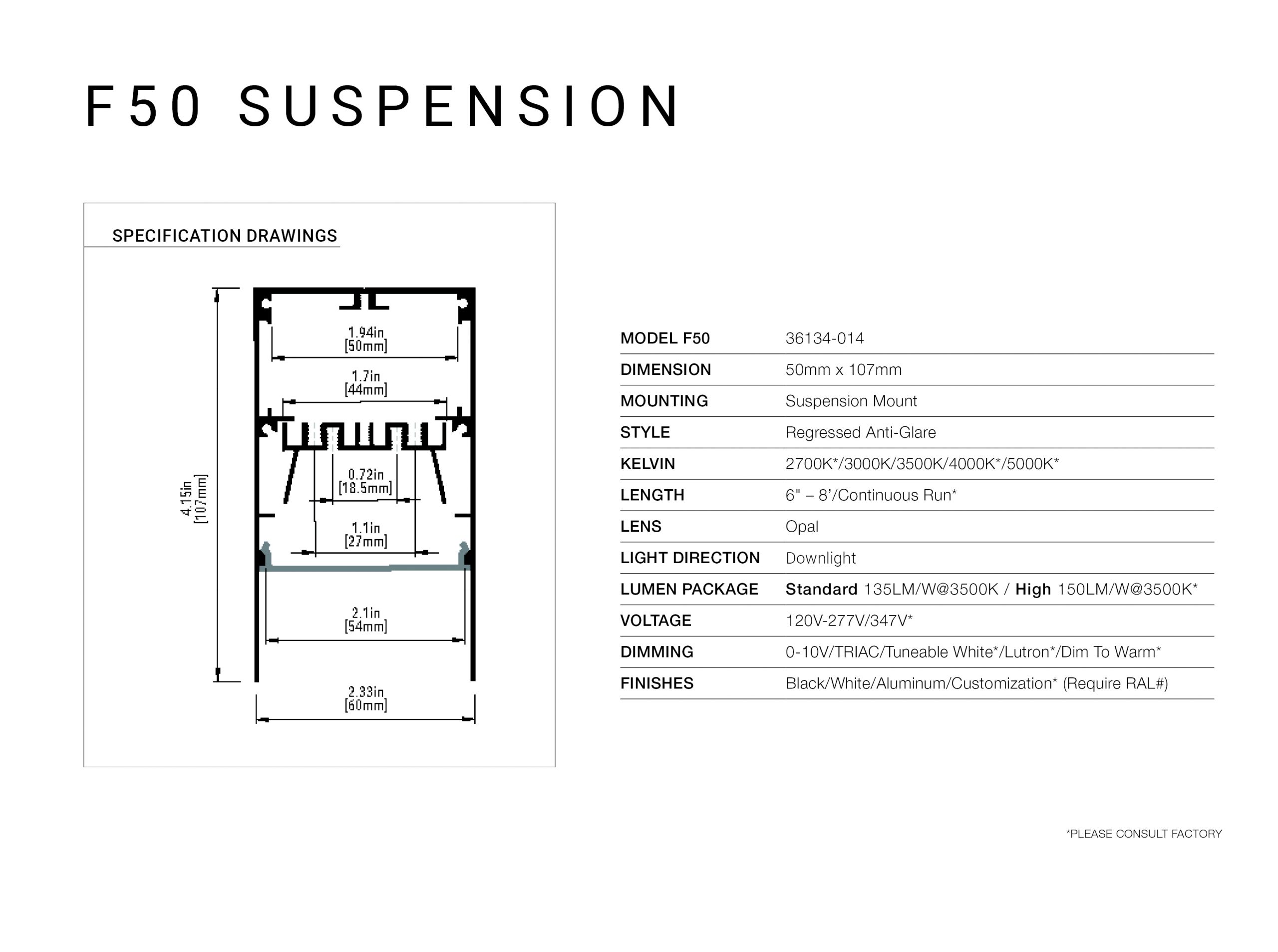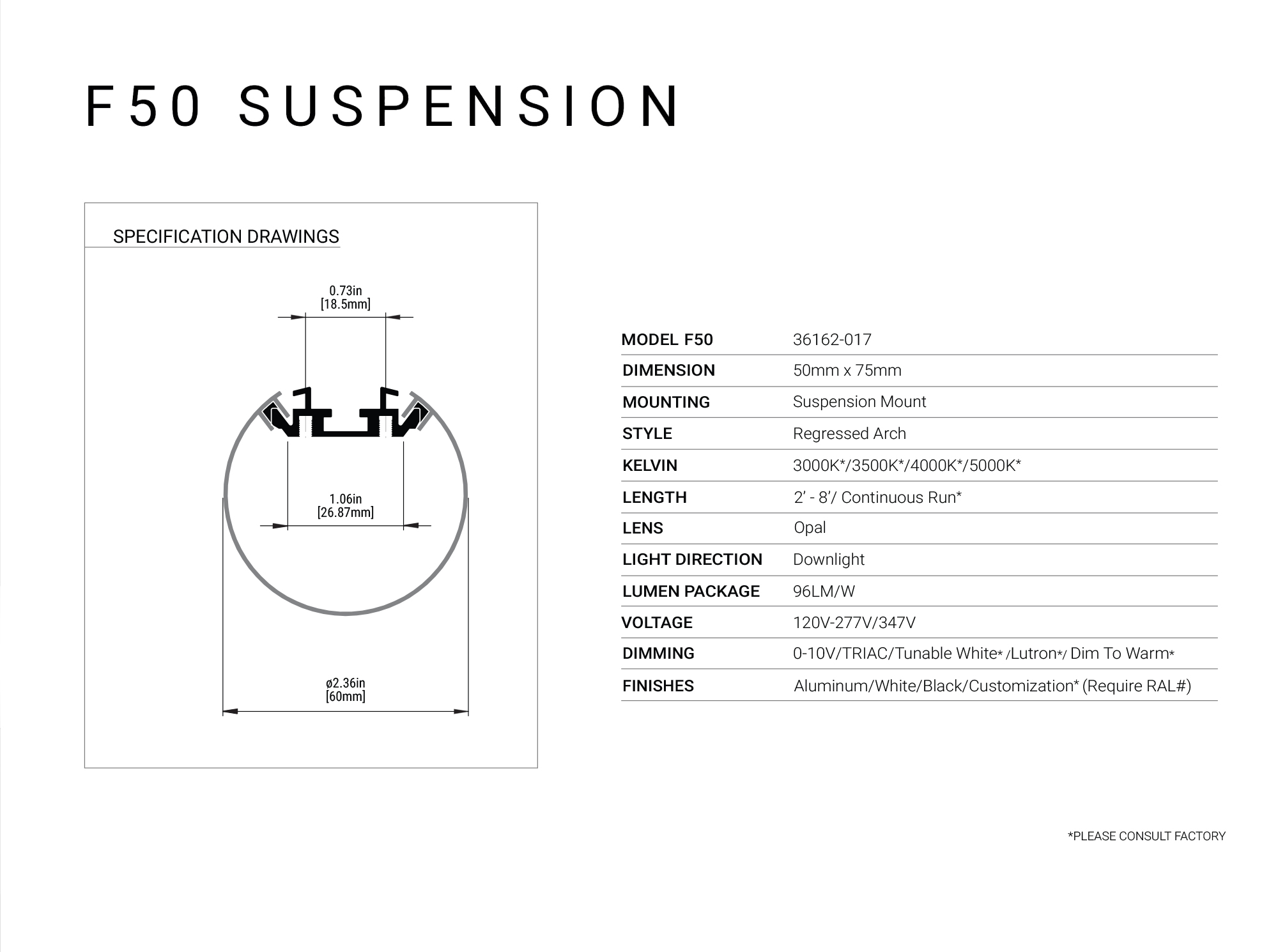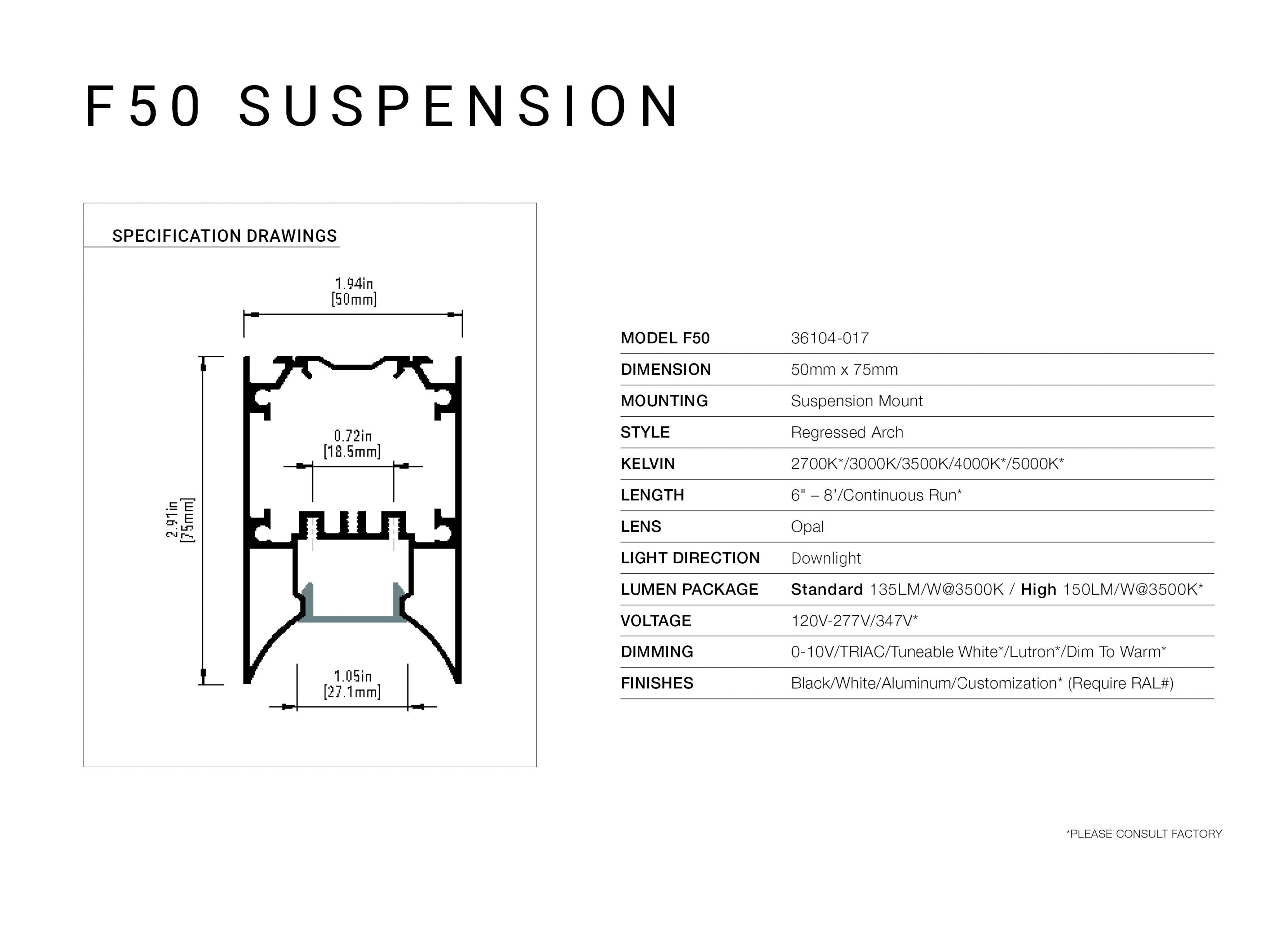Below is our collection of fixtures available within this family. Use our custom configurator at the bottom of this page to customize your product and produce a personalized spec sheet for your project. Included within this download is our Architectural Profile brochure.