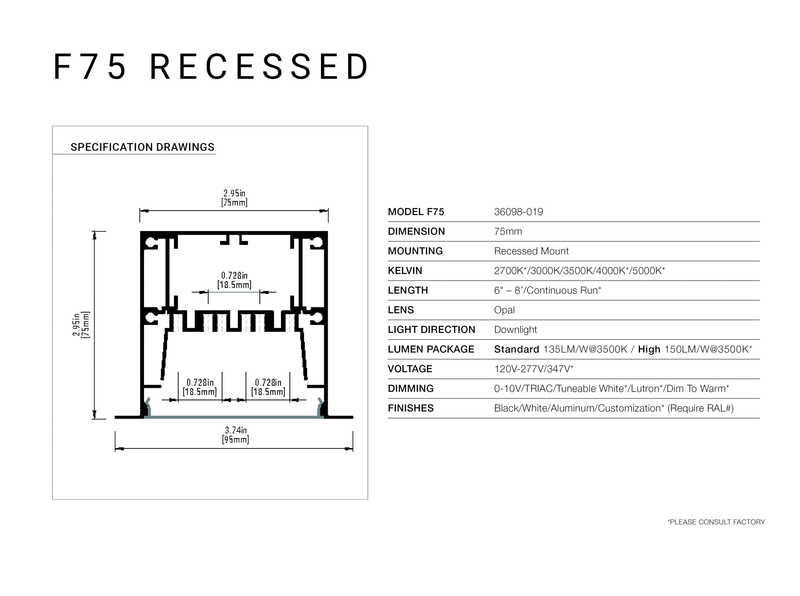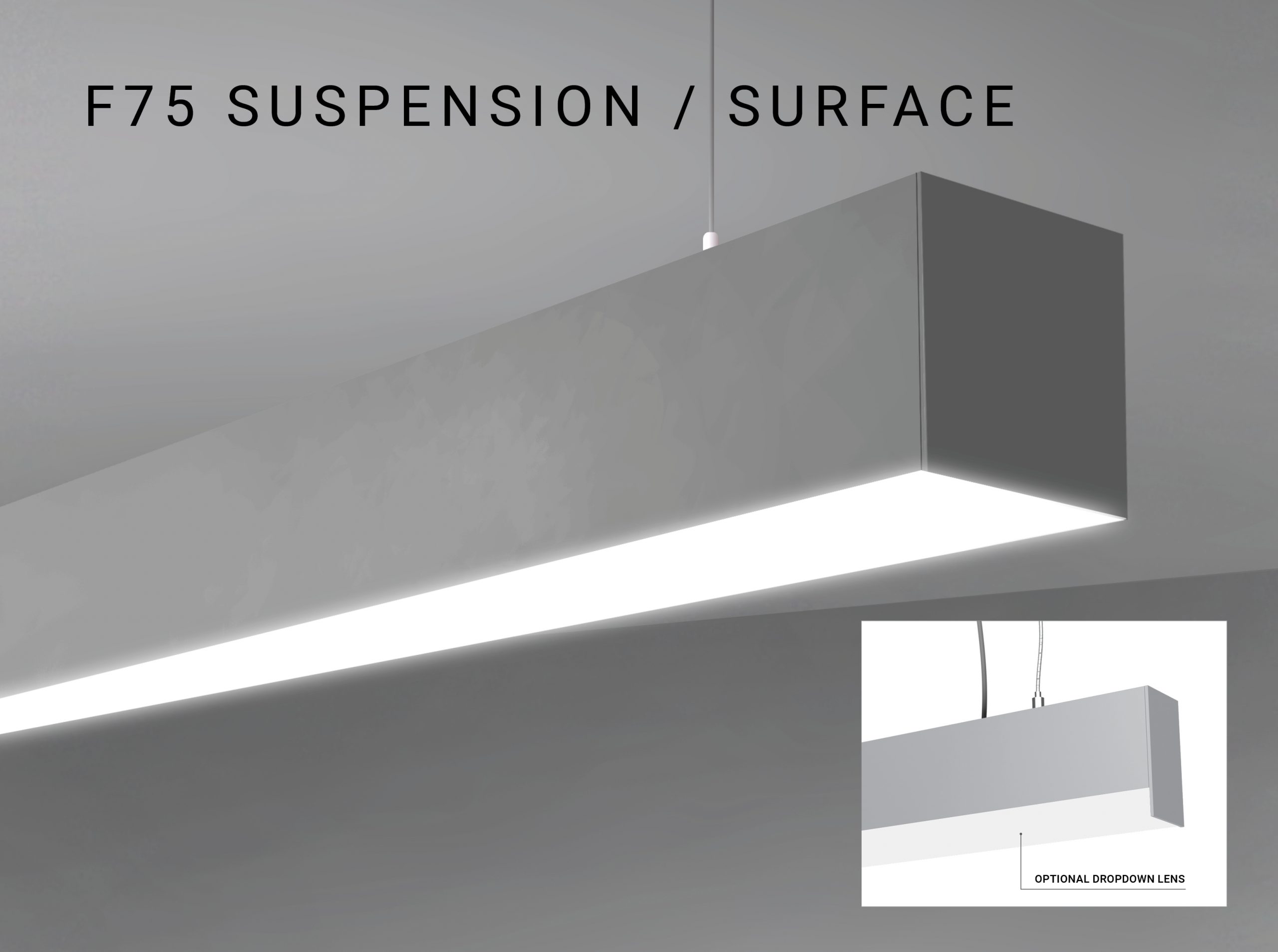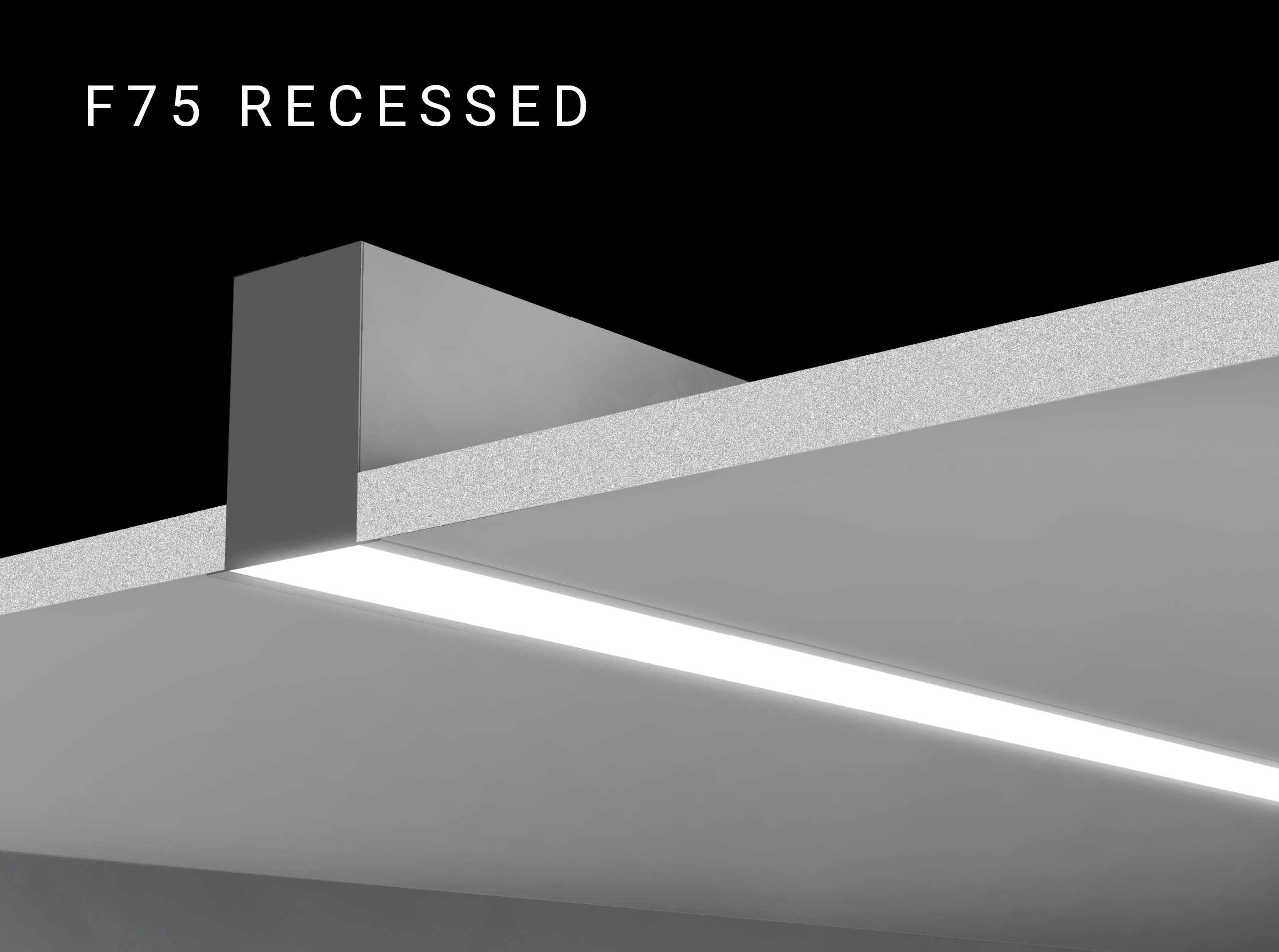 The F75 series is our Architectural Profile sporting an aluminum body sporting a width at 75mm. Ideal for medium to large commercial & residential spaces.