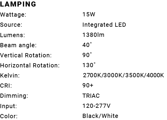Specific to the Subtrackt collection is a versatile arm design, allowing for ample motion with four ways to rotate and adjust the position for specific lighting requirements. Depending on the rotations and adjustments made, the type of light received will change accordingly. The mounting options also allow for further lighting specifications to produce exact illumination for a wall wash effect if needed.